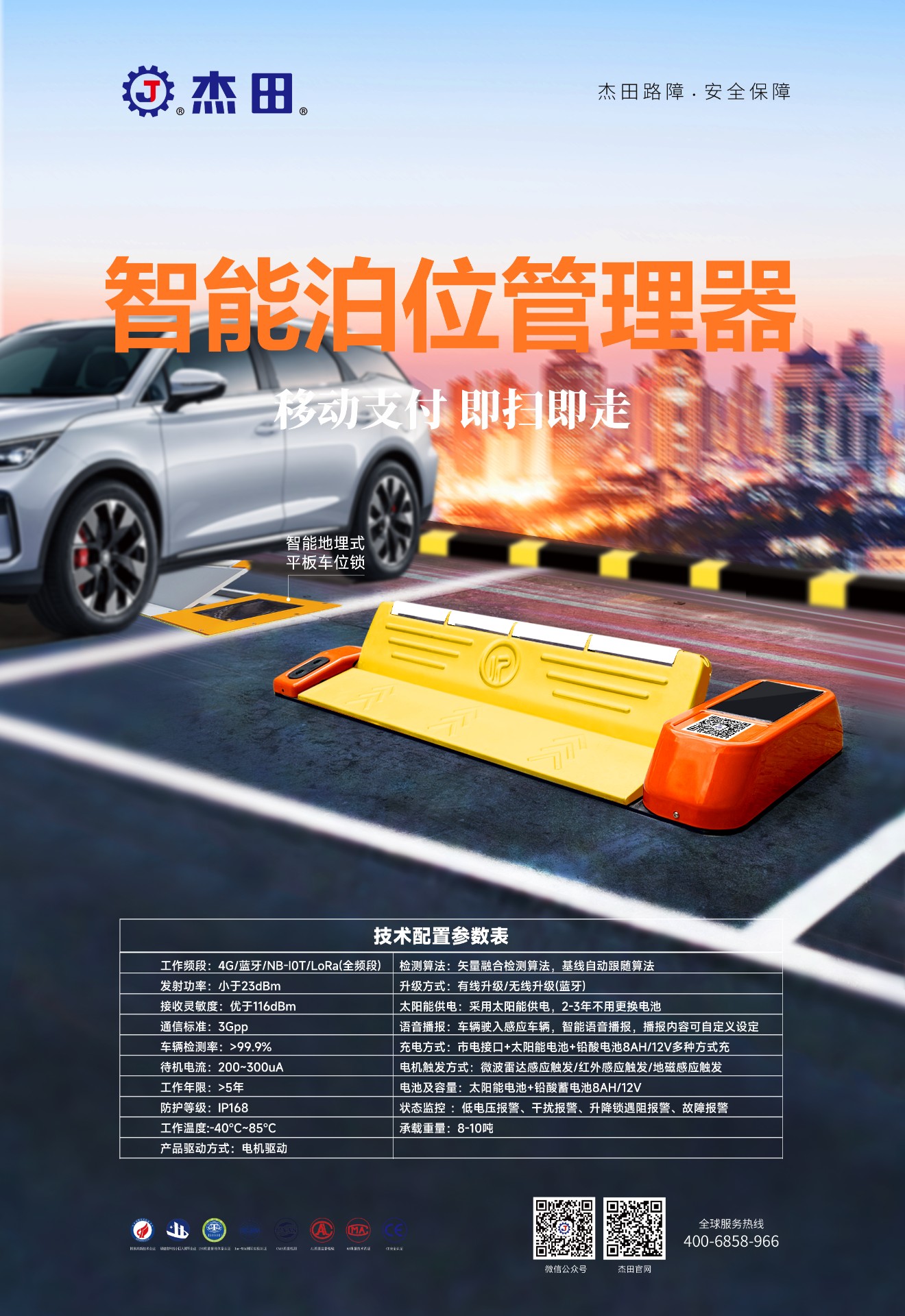 厦门杰田科技深耕智能出入口与停车管理领域20年,聚焦停车资源高效利用与无人化运营,推出杰田智能泊位管理器(智能平板车位锁),以物联网技术为核心,融合智能识别、远程控制、安全防护于一体,破解私家车位被占、公共泊位管理混乱、充电桩燃油车占位、收费难监管等行业痛点,为停车场、社区、园区、新能源充电站、市政路侧泊位等场景提供一站式智能停车管控方案。